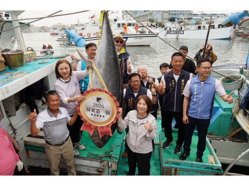 縣長周春米表示,今年屏東黑鮪魚季邁入第26年,因為有眾人的努力,加上護魚政策與生態永續的責任,每年控制捕獲黑鮪的數量,才讓屏東漁民很快捕到第一鮪,也是台灣的第一鮪,隨著第一鮪報到,代表屏東黑鮪魚季即將展開,歡迎大家來東港品嘗黑鮪魚。