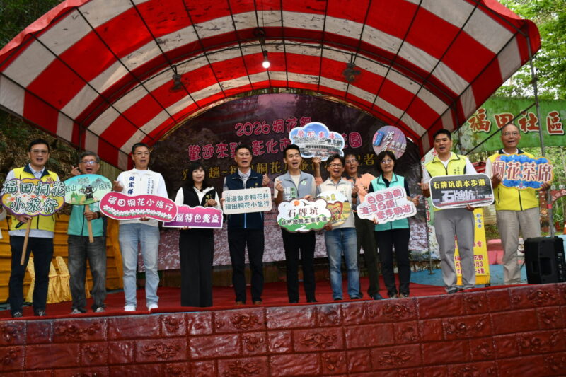 彰化市公所9日在福田賞桐生態園區舉行活動記者會,代表林世賢市長主持記者會的主秘許晉嘉指出,彰化市福田每年4、5月間盛開的桐花,由於主要分布在山谷中,因此特別艷麗且較不會受破壞,也特別感謝在地企業矽品精密工業股份有限公司、財團法人日月光文教基金會對「2026福田桐花祭活動」的大力支持。