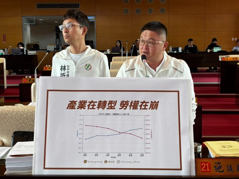 ▲ 市議員施志昌、林祈烽針對台中市勞動環境失衡現象提出質詢。(圖/台中市議員施志昌服務處提供 記者游穎達台中傳真)