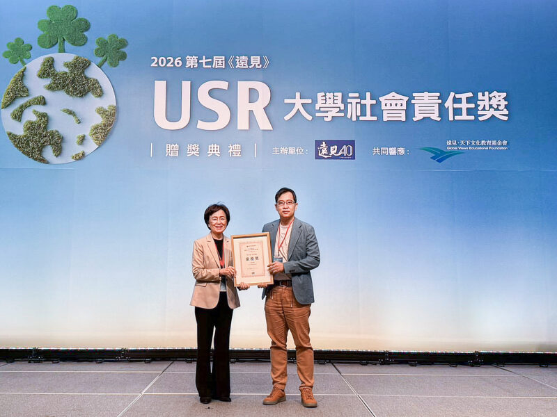 【News586/記者彭慧婉報導】2026年第七屆《遠見》USR大學社會責任獎於昨(9)日舉行頒獎典禮,中原大學在激烈的競爭中脫穎而出,展現卓越的實踐量能!今年參賽案件高達222件、共57所院校參與,刷新歷屆紀錄。中原地景建築系劉為光副教授團隊以「探尋眷村文化與社群生活的永續未來」計畫,榮獲「在地共融組」績優獎。該計畫不僅導入國際視野,更串聯多達16家NGO、公部門及企業,引領學子深耕桃園龍岡,以專業設計守護文化記憶,實踐中原「全人教育」與「學用合一」的核心精神。