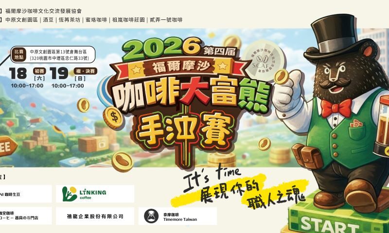 【News586/記者彭慧婉報導】「2026福爾摩沙咖啡同樂節」將於4月18日至4月19日在中原文創園區盛大舉辦。此次結合專業手沖咖啡賽事與風格市集,打造一場兼具職人精神與生活美學的咖啡盛會。今年更首度導入大富翁互動遊戲,讓民眾在邊玩邊逛的過程中,輕鬆認識咖啡文化的多元魅力。