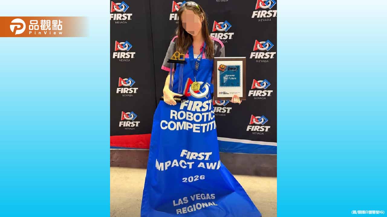 鴻海創辦人郭台銘與夫人曾馨瑩的16歲大女兒妞妞,近日在美國拉斯維加斯參加FIRST機器人競賽區域賽中表現出色,與團隊共同奪得賽事最高等級的「影響力大獎」。曾馨瑩在Instagram限時動態中分享女兒的得獎照片,只見妞妞身披象徵最高榮譽的藍旗,手持獎盃和證書,將獎牌掛在脖子上與團隊成員一同慶祝。