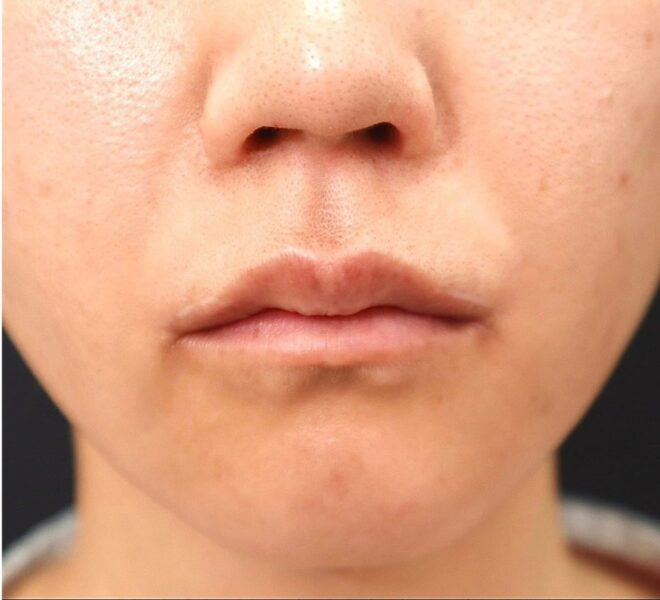 未料術後,涼子的上嘴唇弓末端兩側,各留下長度約1.5公分明顯白疤。術後韓國醫師雖有施打雷射及消疤針多次,予以補救治療,但只是將粗寬疤痕改善成細疤狀,白疤依舊存在,讓她懊惱不已。