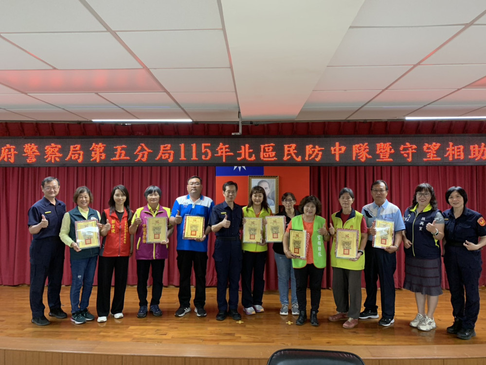 此次表揚115年執行巡守工作績優人員計有:文成里守望相助隊隊長蘇來椿、北華里守望相助隊隊員蔡伶窕、正覺里守望相助隊隊員盧林錦雀、華德里守望相助隊總幹事宋敏琪、立人里守望相助隊隊員鄭美玲、振興里守望相助隊隊員李金蘭、仁愛社區守望相助隊隊員許家瑋、永祥社區守望相助隊副隊長蘇明註等8位。