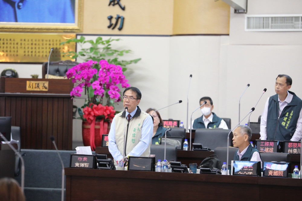 今日市長黃偉哲於會中提出施政總報告,說明市府整體發展與未來重點。黃偉哲表示,面對2025年天災挑戰,市府秉持以民為本精神,攜手中央與市民推動重建,並於2026年持續推進重大建設與公共服務,全面強化城市發展基礎。包括橋梁改建陸續通車,以及永康六甲頂醫療專用區、供水與防洪設施等建置,持續提升城市韌性與生活品質;同時以南科與沙崙為核心,串聯產業聚落,推動金融專區與智慧物流建設,帶動投資動能與產業升級,提升臺南整體競爭力。
