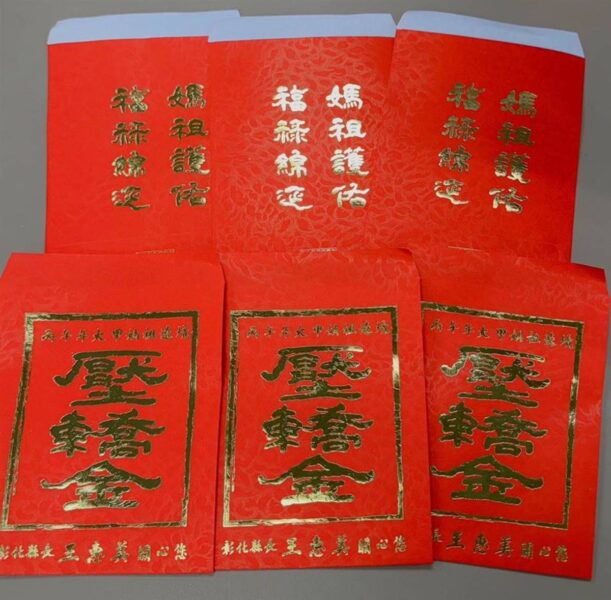 值得一提的是,今年度壓轎金紅包袋特別邀請國內知名書法大師吳肇勳老師親筆題字,以「媽祖護佑、福祿綿延」為主題,象徵媽祖庇佑眾生、福氣綿長,寓意隨行祈福、平安順遂,展現宗教文化的深厚底蘊,更融合彰化在地藝術價值。