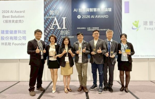2026 台灣人工智慧獎(TAIA AI Award)公布得獎名單,台灣人工智慧協會主辦之「AI Award 2026 Best Solution」中,建豐健康科技(FongAI)以其「AI Safety Compliance」應用方案獲頒服務貢獻獎。該方案目前已於台灣多處場域導入,並拓展至新加坡與日本等地,展現台灣在高齡照護與人工智慧應用領域的發展動能。