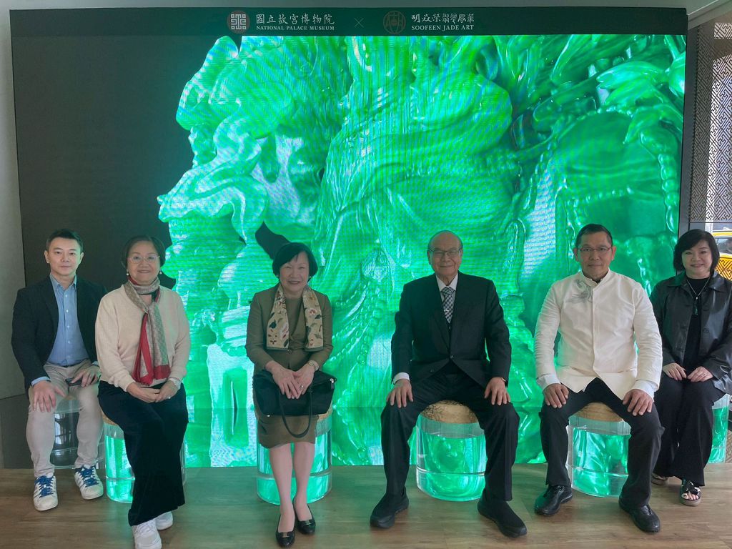 前排左起胡焱榮玉雕大師、高崇雲總院長、周功鑫前故宮博物院院長、王海倫執行長於翡翠博物館合影。(圖/高崇雲提供)