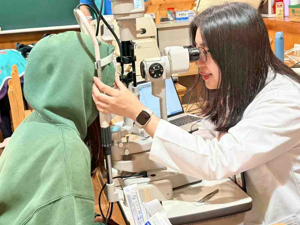 ▲尖石鄉健保醫療給付效益提昇計畫25週年「深耕尖石.你我共成就」活動,馬偕紀念醫院團隊在司馬庫斯小學為民眾提供眼科視力檢查。(圖/健保署北區業務組提供)
