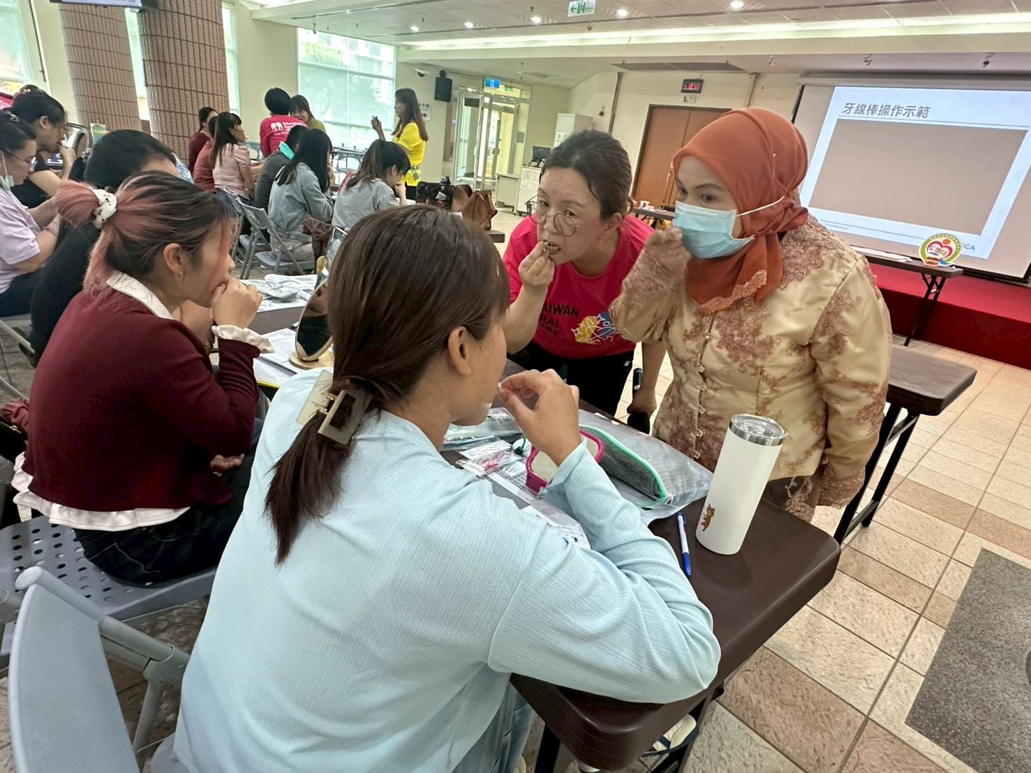 今天更有來自機構的印尼安蒂照服員,他說透過現場老師及通譯員的翻譯,讓他懂得刷牙照護的技巧,回去機構後更有勇氣及信心協助機構裡的阿公阿嬤刷牙。